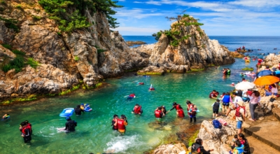 한국의 나폴리로 이름 난 수려한 어촌 마을 장호항은 개장 2년여 만에 탑승객 100만명 돌파를 눈앞에 두고 있는 해상케이블카가 널리 알려진 곳이기도 해요. 속이 훤히 들여다보일 정도로 투명하고 맑은 바닷물은 그 어떤 곳과 견주어도 뒤지지 않는 청명함을 자랑하는 수려한 명소예요. 투명 카약과 스노클링 등 레저 스포츠를 하도록 장비를 대여하고 있지만 직접 챙겨간다면 무료로 즐길 수 있어 여름에 가면 좋은 삼척 가볼만한곳 이예요.