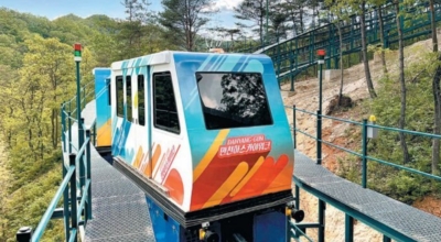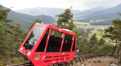 산을 오르내리는 모노레일인데요 스릴이 넘친다는 말도 있다고 하며 시원하다는 말도 있답니다. 생각보다 높은 산길을 오르는 각도 때문에 무섭다는 분들도 있답니다. 하지만 이를 타고 편안하게 전망대까지 오를 수 있다는 게 매력으로 다가온다고 해요. 비봉 하늘 전망대에서 내려다관찰되는 경치가 장관이라고 해요.