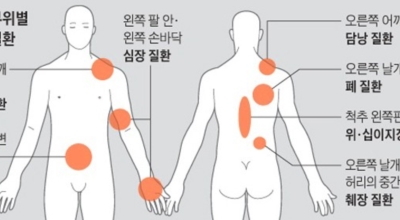 오른쪽 등 통증 의심되는병