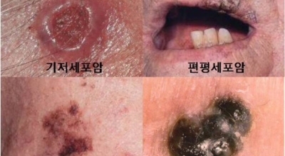 기저암은 피부암 전체 환자 수 중에서 33%를 차지할 정도로 흔하지만 사망률은 비교적 낮은 편입니다. 털이 나는 모공에서 발생하며 모양이 기저 셀을 닮았다고 하여 기저세포암이라는 이름이 붙여졌습니다. 신체 부위 중에서는 자외선 노출이 많은 얼굴에 생기는 경우가 많으며, 초기 증상은 피부에 궤양처럼 붉은 구멍이 생기면서 염증같이 보이는 것이 특징입니다.
