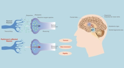 파킨슨병은 도파민 분비 신경 세포의 소실로 발생하는 질환으로 알려져 있는데요 도파민이란 뇌의 신경세포에서 만들어지는 물질로 세포와 세포 간의 신호를 전달하는데 이용되는 신경 전달 물질 중 한가지로 이 도파민이 감소함에 따라 파킨슨병이 걸린다고 하는데 이 도파민 세포가 떨어지는 이유는 아직 정확히 밝혀지지 않았다고 합니다.