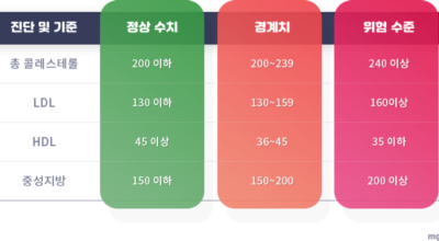 이 수치 이상이면 이상지질혈증이라 할 수 있어요.